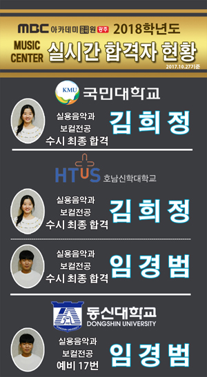 [뮤직센터] 2018학년도 수시합격자 현황 페이지 정보 작성자 관리자 댓글 0건 조회 26,823회 작성일 17-11-29 20:03 본문 2018학년도 수시합격자 현황 목록 이전글 [모델센터] 2018학년도 수시합격자 현황 17.11.29 다음글 [드라마센터] 2018학년도 수시합격자 현황 17.11.29